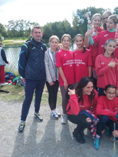 Miejskie Igrzyska Dzieci w sztafetowych biegach przełajowych: wicemistrzynie z SP38, opiekun Robert Siuda.