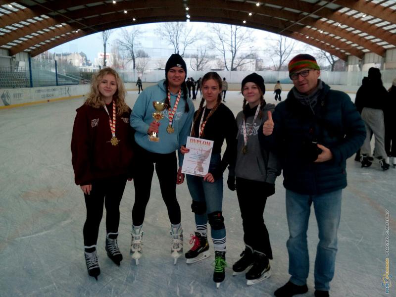 Miejska Licealiada w łyżwiarstwie szybkim, zwyciężczynie z IX LO im.C.K.Norwida, opiekun - Dariusz Gawroński