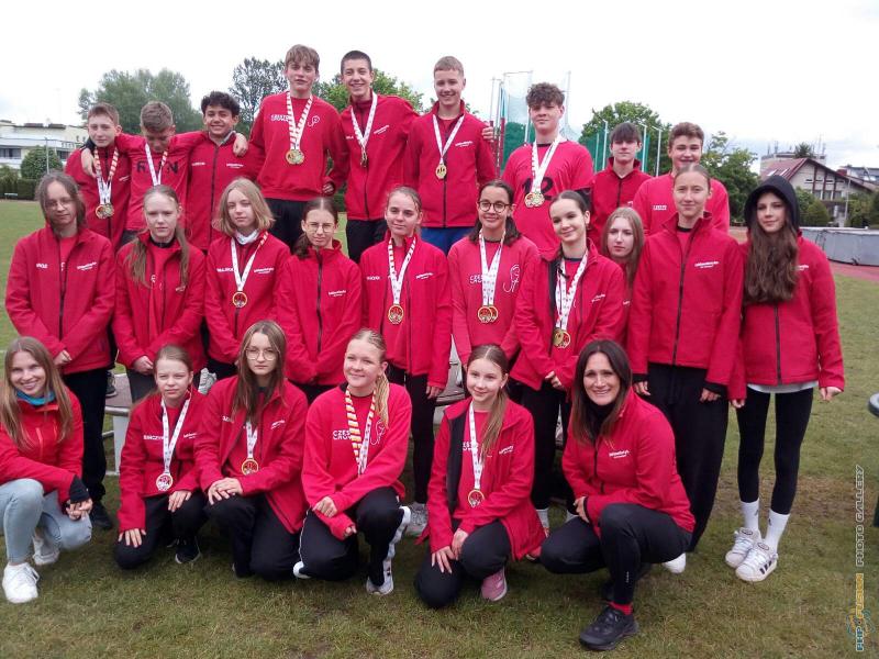 Zwyciężczynie i Zwycięzcy z SP 7 w Szkolnej Drużynowej Lidze LA. Opiekunki: Żaneta Trąbczyńska i Aleksandra Wróblewska.