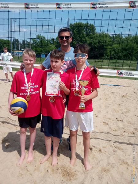 Miejskie Igrzyska Dzieci w siatkówce plażowej - zwycięzcy z SP 38, opiekun - Paweł Bielak.