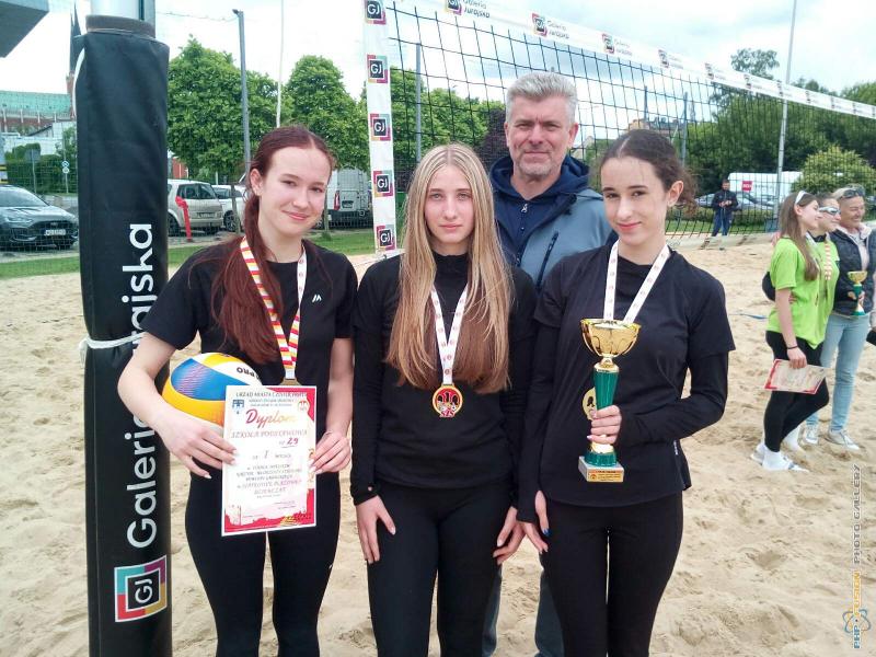 Miejskie IMS w siatkówce plażowej - zwyciężczynie z SP 29, opiekun - Dariusz Szlubowski.
