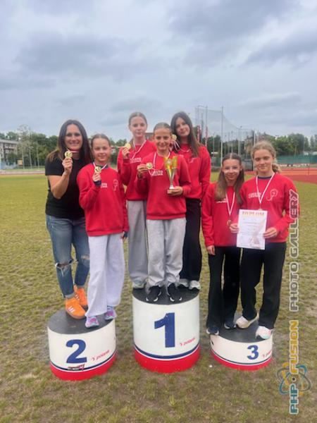 Finał Wojewódzki ID w czwórboju lekkoatletycznym - Złote Medalistki z SP 7, opiekun - Żaneta Trąbczyńska.