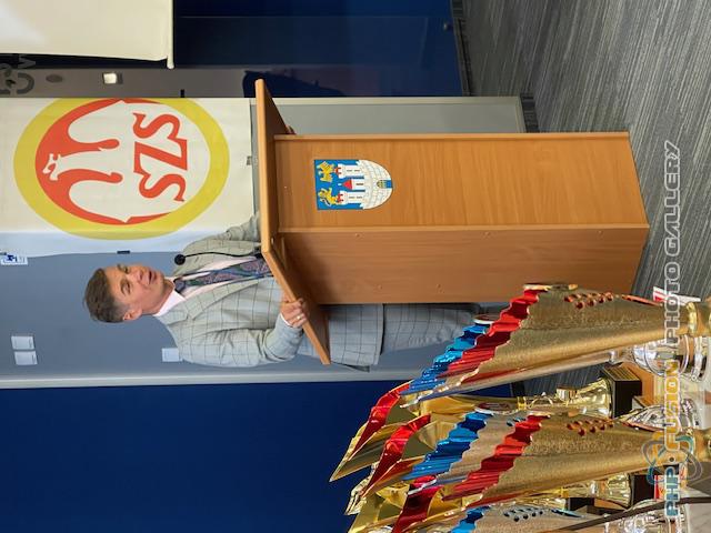 Podsumowanie szkolnego roku sportowego. Przemawia v-ce Prezydent Miasta - Pan Łukasz Pabiś.