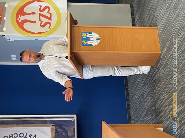 Podsumowanie szkolnego roku sportowego. Przemawia Dyrektor SP 13 - Pan Janusz Ferenc.