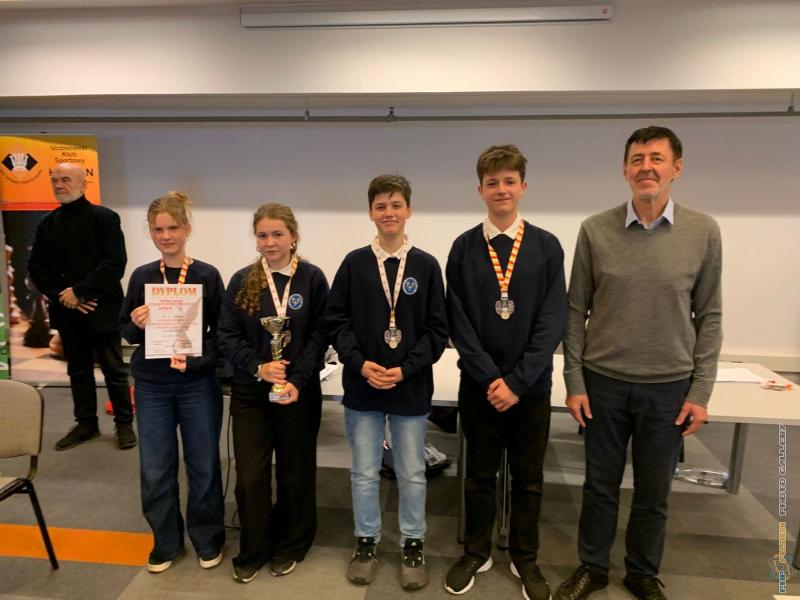 Miejskie Igrzyska Młodzieży Szkolnej w szachach, zwycięzcy z KSP SPSK, opiekun - Bogdan Snarski.