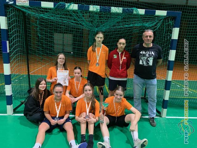 Miejskie Igrzyska Młodzieży Szkolnej w piłce nożnej, zwyciężczynie z SP 50, opiekun - Mariusz Sędzielewski.