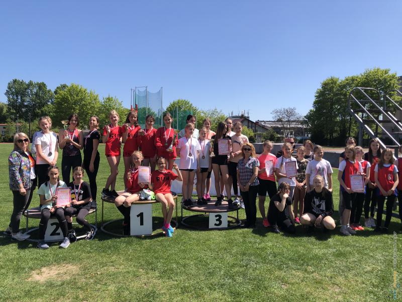 Medalistki Igrzysk Młodzieży Szkolnej w czwórboju lekkoatletycznym. I miejsce SP7, II miejsce SP38 nauczyciel Dagmara Zyngier, III miejsce SP50 nauczyciel Barbara Sadowska.