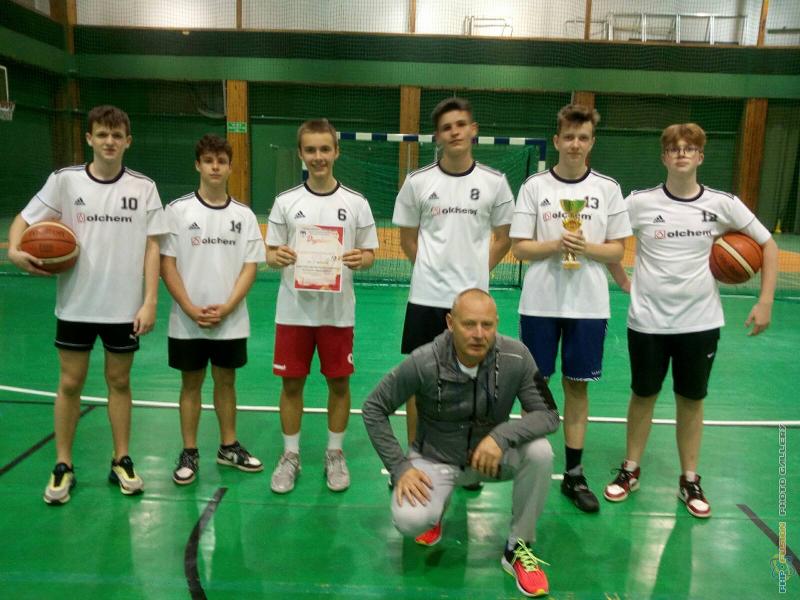 Igrzyska Młodzieży Szkolnej w koszykówce 3x3, mistrzowie z SP13, nauczyciel Leszek Matyja.