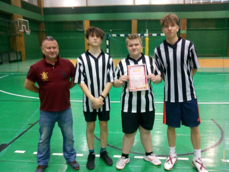 Igrzyska Młodzieży Szkolnej w koszykówce 3x3, zdobywcy IV miejsca z SP34, nauczyciel Mariusz Stępień.