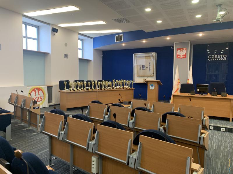 Uroczystość podsumowania współzawodnictwa sportowego szkół za rok szkolny 2021/2022 - sala sesyjna Urzędu Miasta 21.06.2022 r.