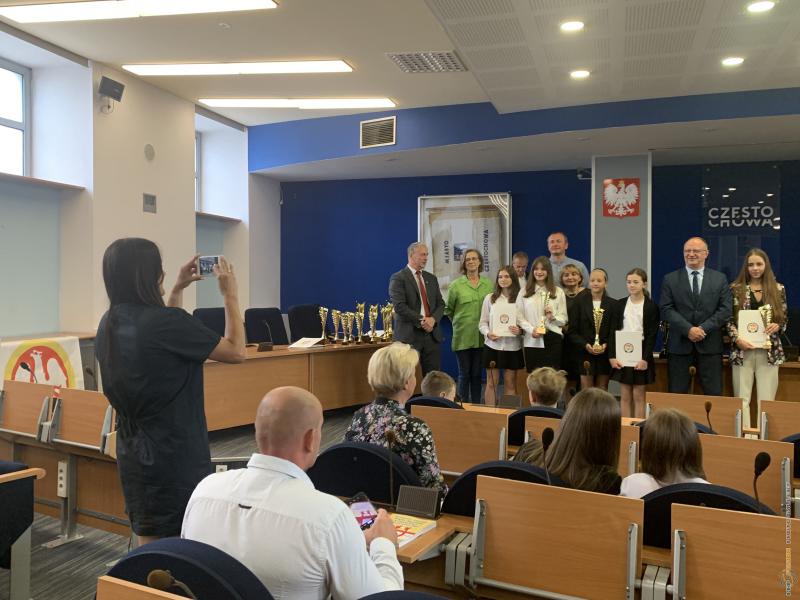 Uroczystość podsumowania współzawodnictwa sportowego szkół za rok szkolny 2021/2022 - sala sesyjna Urzędu Miasta 21.06.2022 r.