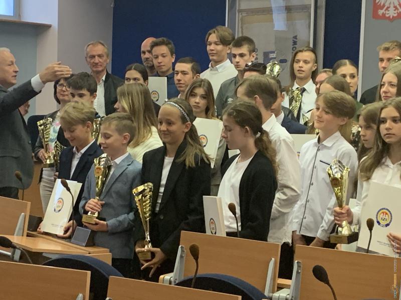 Uroczystość podsumowania współzawodnictwa sportowego szkół za rok szkolny 2021/2022 - sala sesyjna Urzędu Miasta 21.06.2022 r.