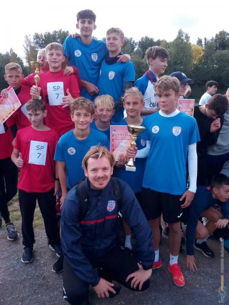 Miejskie Igrzyska Młodzieży Szkolnej w sztafetowych biegach przełajowych. Zwycięzcy z SMS Nobilito, wicemistrzowie z SP7.