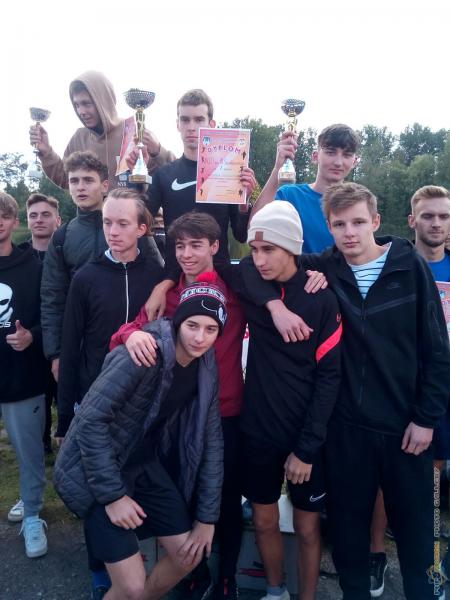 Miejska Licealiada sztafetowych biegów przełajowych. Zwycięzcy z IV LO im. H. Sienkiewicza, II miejsce ZS im. J. Kochanowskiego, III miejsce TZN.