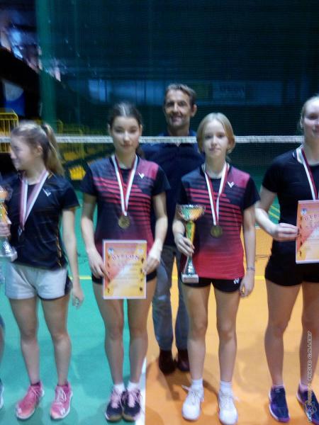 Licealiada w badmintonie, zwyciężczynie z TZN, opiekun Marek Mizera