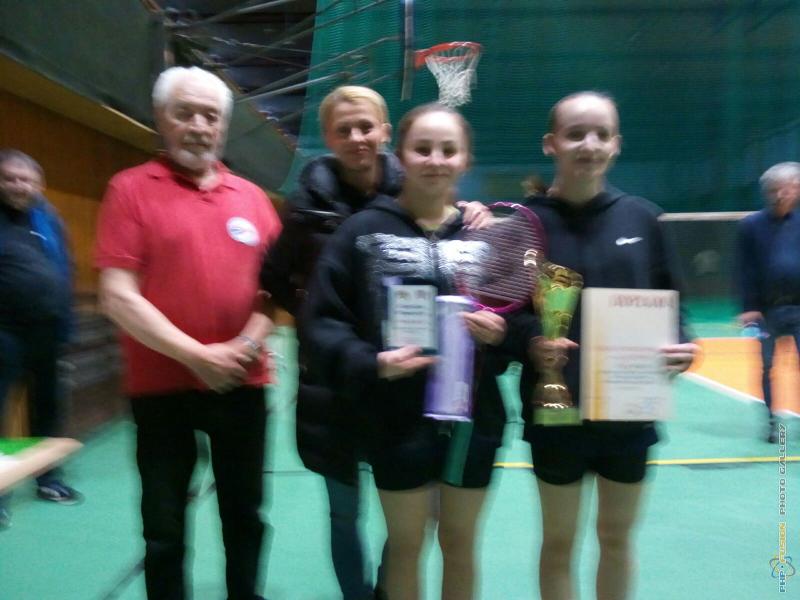 Zwyciężczynie zawodów rejonowych w badmintonie IMS z SP Olsztyn, opiekun - Alicja Matyja