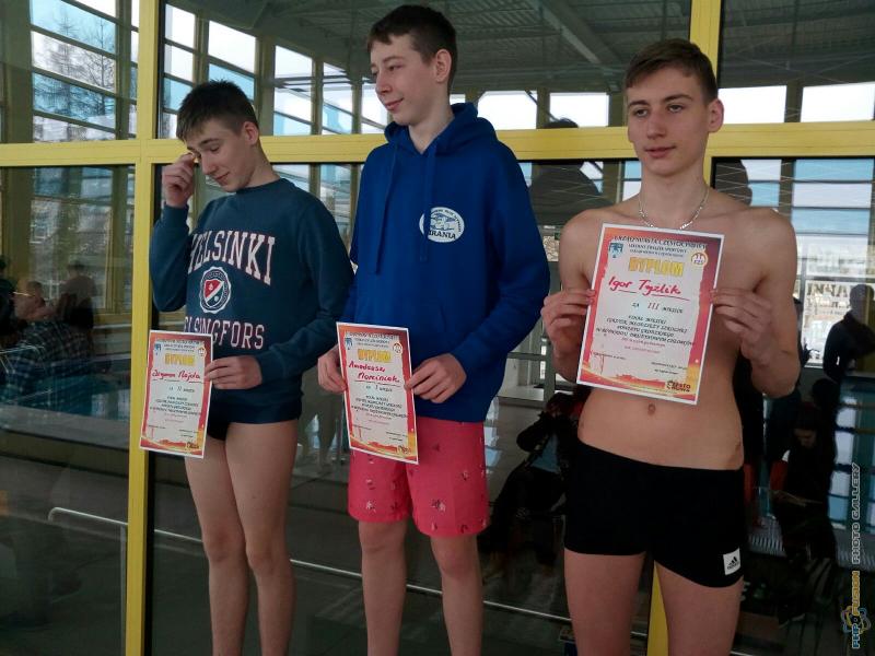 Pływanie IMS, 100 m grzbietem, Im. Amadeusz Marciniak, IIm. Szymon Majda, IIIm. Igor Tyżlik