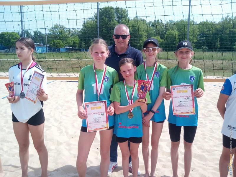 Miejskie Igrzyska Dzieci w siatkówce plażowej, zwyciężczynie z SP48. Opiekun: Maciej Zajęcki.