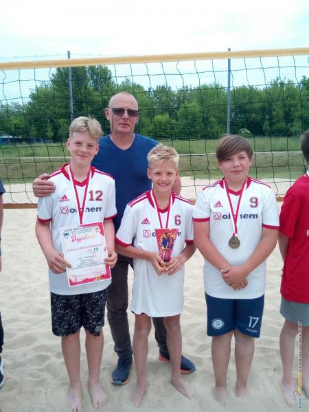 Miejskie Igrzyska Dzieci w siatkówce plażowej, zwycięzcy z SP13. Opiekun: Leszek Matyja.