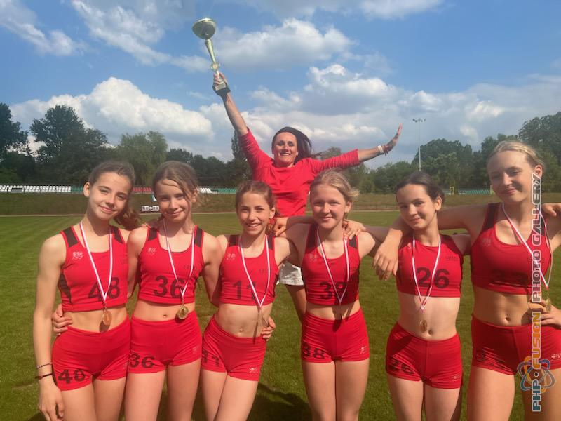 Mistrzynie Śląska Igrzysk Dzieci w czwórboju LA z SP7. Opiekun: Żaneta Trąbczyńska.