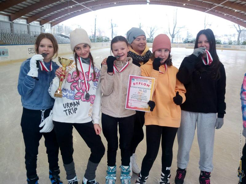 Miejskie Igrzyska Młodzieży Szkolnej w łyżwiarstwie szybkim, wicemistrzynie z SP 48. Opiekun: Aneta Staszczyk.