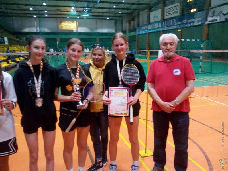 Miejskie IMS w badmintonie, 2 m. - SP 48, opiekun: Aneta Staszczyk, po prawej sędzia główny zawodów: Maciej Żmudziński.