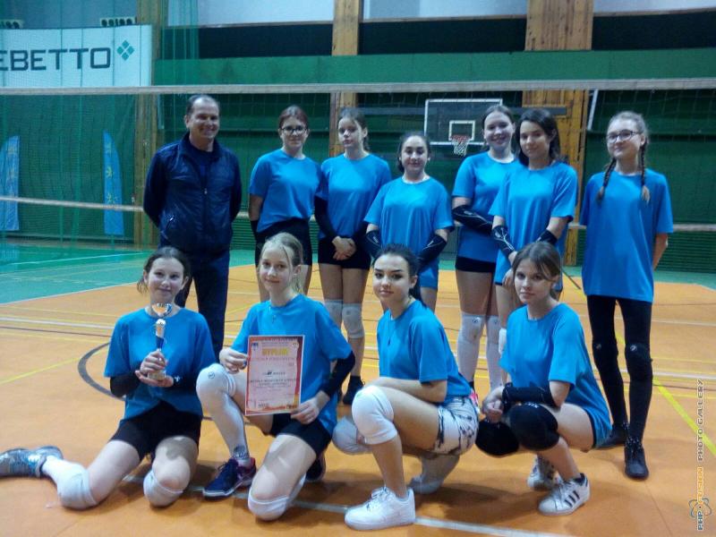Igrzyska Młodzieży Szkolnej w piłce siatkowej dziewcząt Hala Polonia IV 2022 r. - zdobywczynie III miejsca z SP 50, opiekun Jacek Ostaszewski