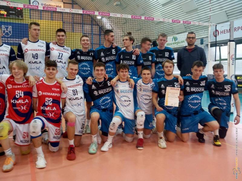 1/2 finału wojewódzkiego Licealiady w piłce siatkowej: finaliści IX LO im. C. K. Norwida i I LO w Będzinie. 26.04.2022 r., Hala LO Norwida w Częstochowie