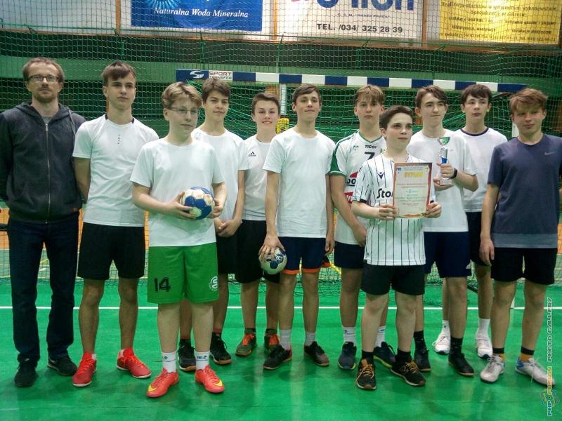 Miejskie Igrzyska Młodzieży Szkolnej w piłce ręcznej - zdobywcy III miejsca z Publicznej Szkoły Sióstr Zmartwychwstanek. Opiekun Tomasz Kapica