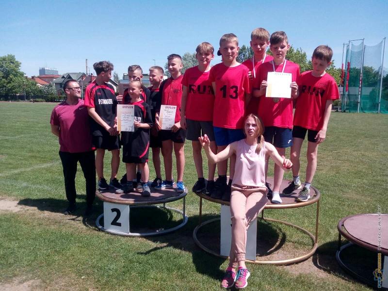 Zawody Rejonowe w czwórboju LA Igrzysk Dzieci. I miejsce SP7, nauczyciel Aleksandra Wróblewska, II miejsce SP Starokrzepice.