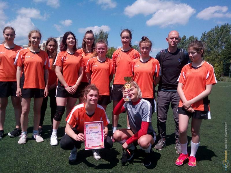 Miejska Licealiada w piłce nożnej, zdobywczynie III miejsca z II LO im. R. Traugutta, nauczyciel Bartłomiej Bigdowski.