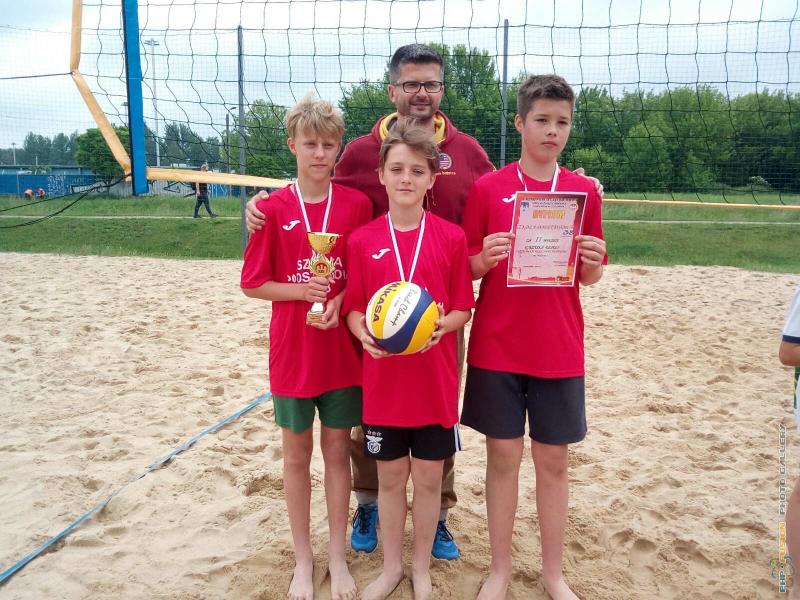 Miejskie Igrzyska Dzieci w piłce plażowej, zdobywcy II miejsca z SP38, nauczyciel Paweł Bielak.