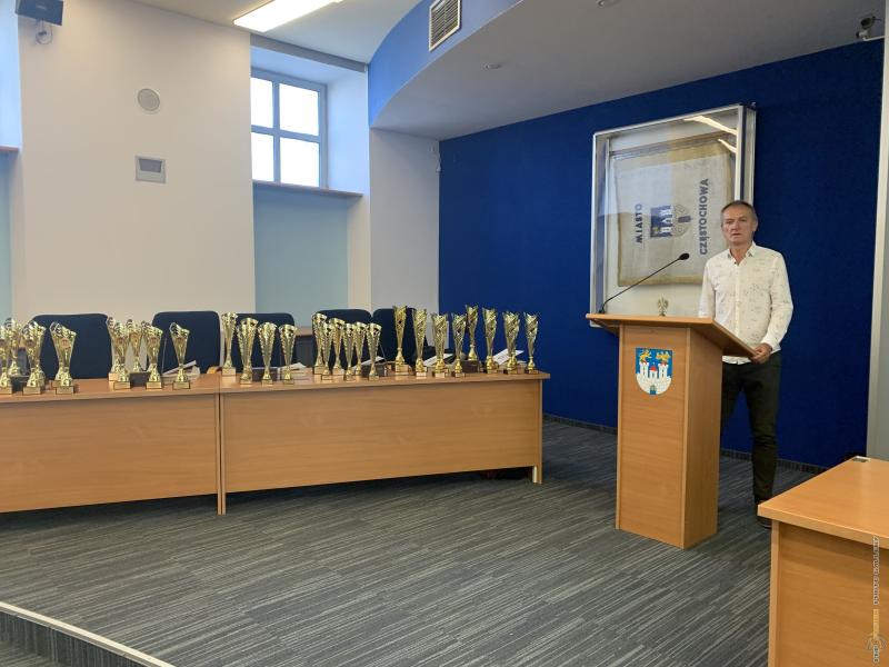 Uroczystość podsumowania współzawodnictwa sportowego szkół za rok szkolny 2021/2022 - sala sesyjna Urzędu Miasta 21.06.2022 r.
