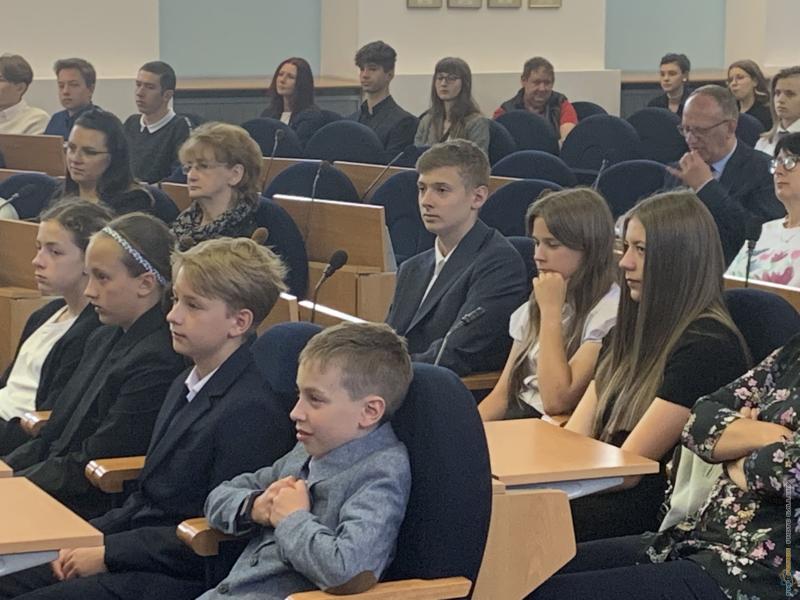 Uroczystość podsumowania współzawodnictwa sportowego szkół za rok szkolny 2021/2022 - sala sesyjna Urzędu Miasta 21.06.2022 r.