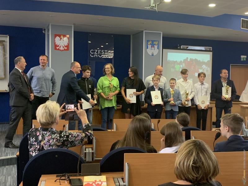 Uroczystość podsumowania współzawodnictwa sportowego szkół za rok szkolny 2021/2022 - sala sesyjna Urzędu Miasta 21.06.2022 r.