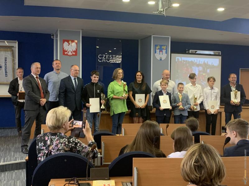 Uroczystość podsumowania współzawodnictwa sportowego szkół za rok szkolny 2021/2022 - sala sesyjna Urzędu Miasta 21.06.2022 r.