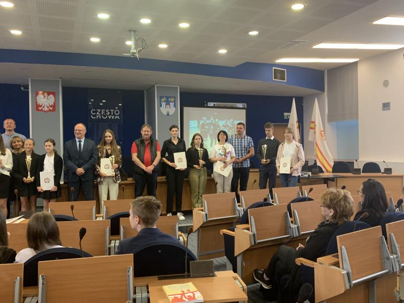 Uroczystość podsumowania współzawodnictwa sportowego szkół za rok szkolny 2021/2022 - sala sesyjna Urzędu Miasta 21.06.2022 r.