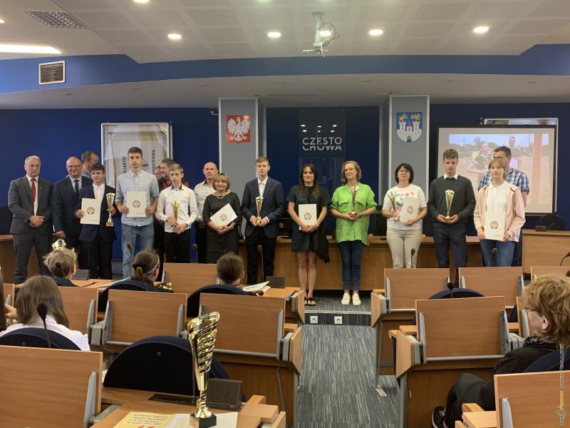 Uroczystość podsumowania współzawodnictwa sportowego szkół za rok szkolny 2021/2022 - sala sesyjna Urzędu Miasta 21.06.2022 r.