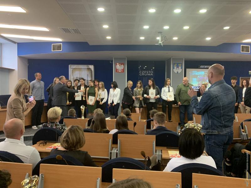 Uroczystość podsumowania współzawodnictwa sportowego szkół za rok szkolny 2021/2022 - sala sesyjna Urzędu Miasta 21.06.2022 r.