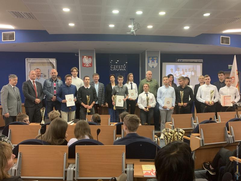 Uroczystość podsumowania współzawodnictwa sportowego szkół za rok szkolny 2021/2022 - sala sesyjna Urzędu Miasta 21.06.2022 r.