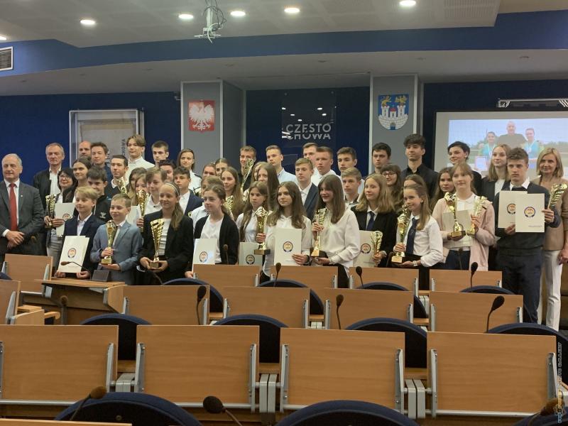 Uroczystość podsumowania współzawodnictwa sportowego szkół za rok szkolny 2021/2022 - sala sesyjna Urzędu Miasta 21.06.2022 r.