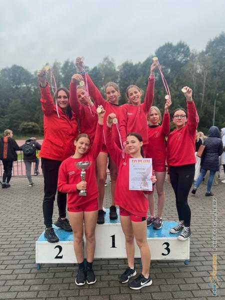 Mistrzostwa Województwa w sztafetowych biegach przełajowych, Igrzyska Młodzieży Szkolnej. Zwyciężczynie z SP7. Opiekun: Żaneta Trąbczyńska.