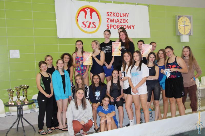 Miejska Licealiada w pływaniu, drużynowe medalistki z LO Sienkiewicza, Norwida i Traugutta.