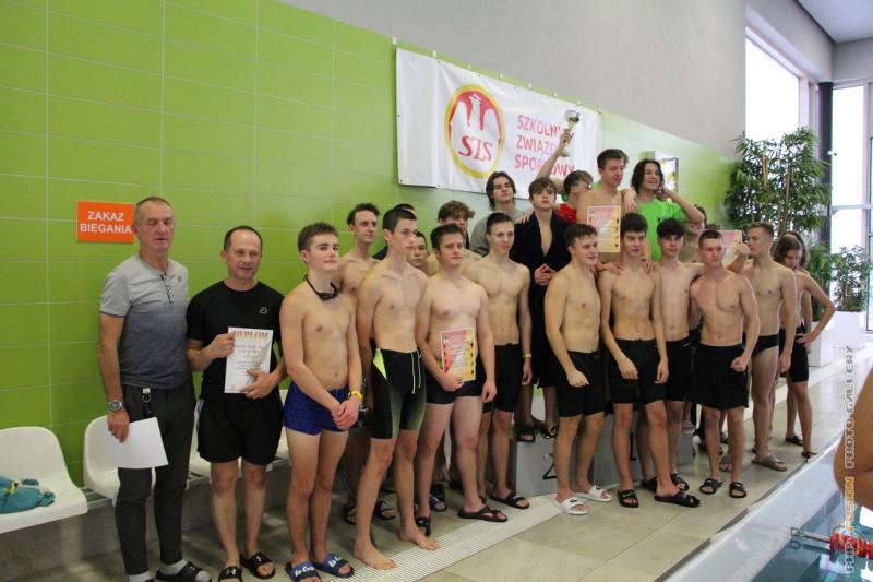 Miejska Licealiada w pływaniu, drużynowi medaliści z LO Sienkiewicza, TZN i Traugutta.