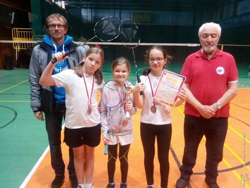 Miejskie Igrzyska Dzieci w badmintonie, zdobywczynie III miejsca z PSP Sióstr Zmartwychwstanek. Opiekun: Tomasz Kapica.