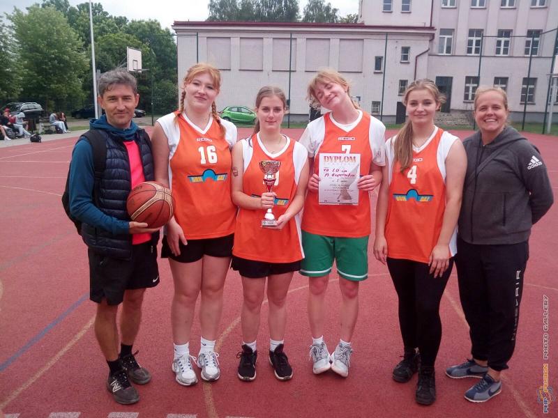 Licealiada w koszykówce 3x3, zwyciężczynie z VII LO im. M. Kopernika. Opiekunowie: Agnieszka Motyl i Michał Machniewicz.